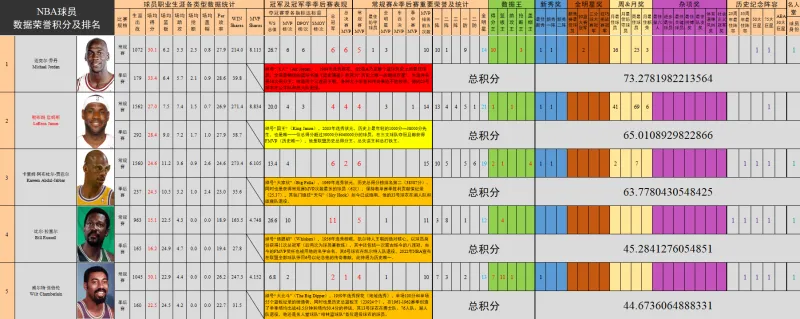 別緊張,我并不打算全部貼出來,但是JR們可以提出你想知道的球員的排名,同時,我會把他的前后兩位也貼出來作為參考。以此作討論的同時進行我的內(nèi)容完善(只討論打過NBA的球員,只打過ABA、NBL、ABL、EPBL、MBL、WBA、AABA等聯(lián)賽,但沒有打過NBA的,不納入范圍)