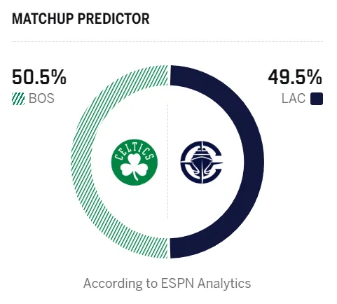 賽前,日比人勝美媒ESPN預測本場比賽,賽凱凱爾特人勝率50.5%,爾特快船勝率49.5%。