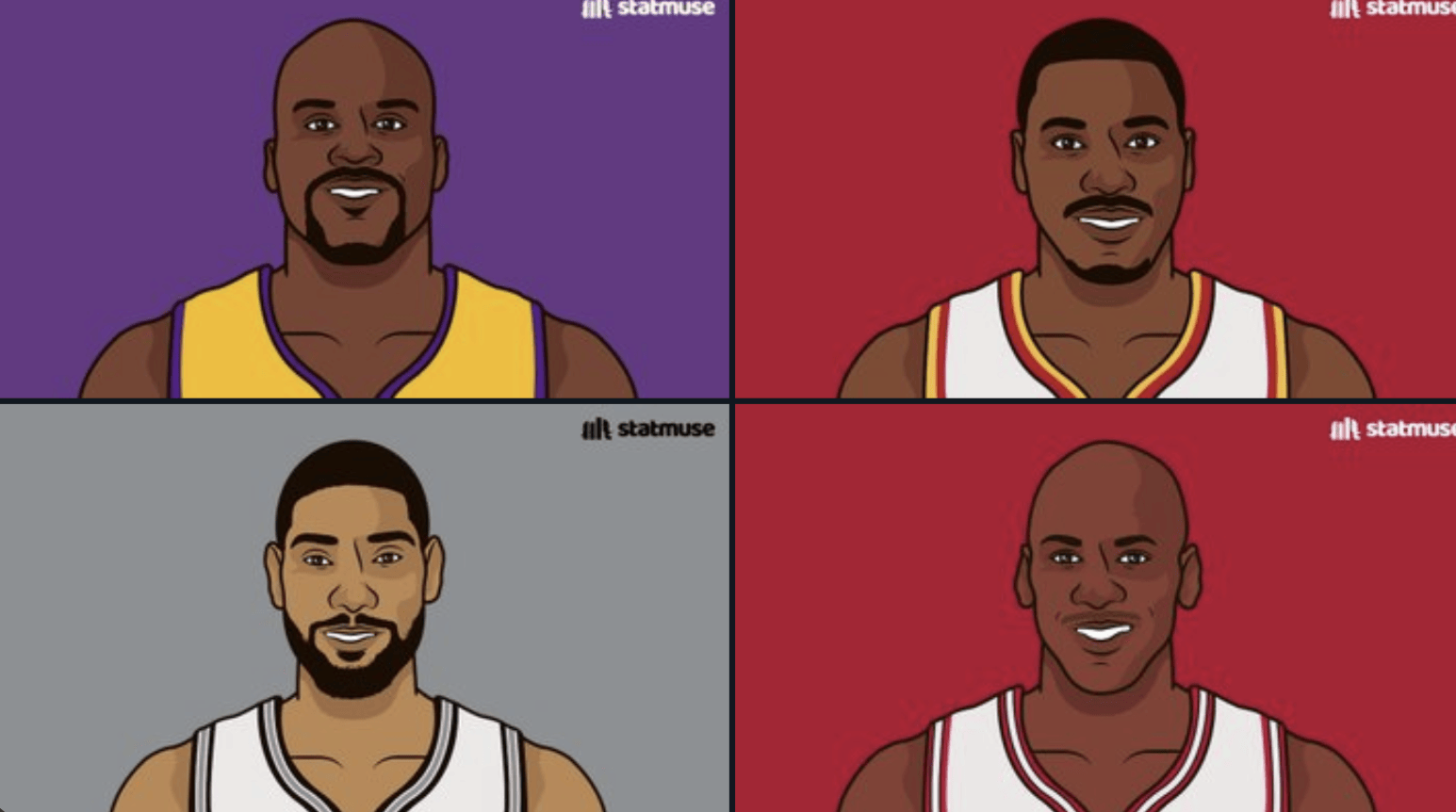 1988年一陣包括:魔術(shù)師約翰遜、邁克爾-喬丹、拉里-伯德、查爾斯-巴克利、哈基姆-奧拉朱旺