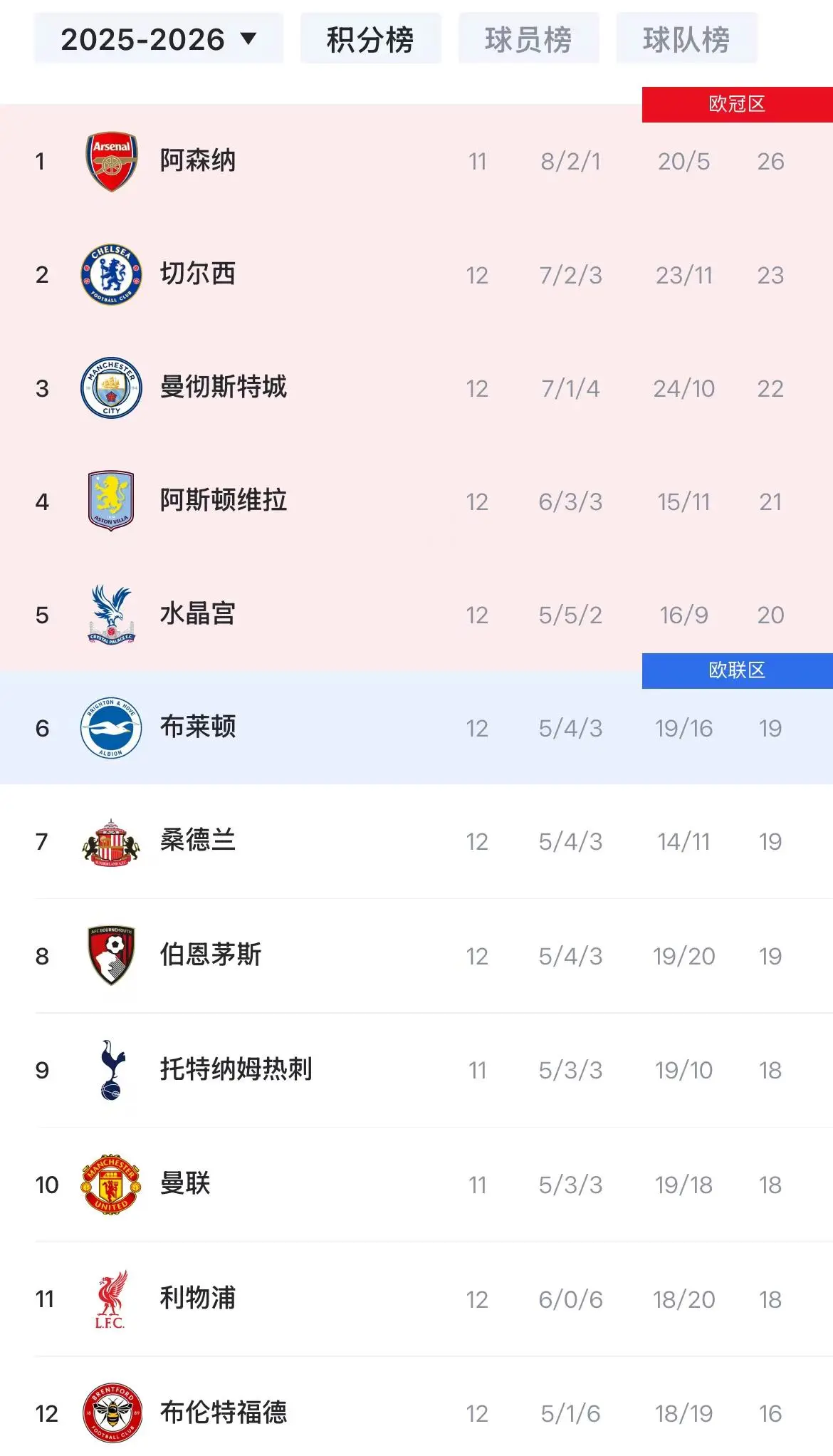 從積分走勢看,維拉前5輪僅拿到3分、一度排在第18位,如今已在12輪過后攀升至第4名,積分達(dá)到21分,完成強(qiáng)勢反彈。利物浦則從第五輪時的15分(當(dāng)時高居榜首),一路下滑至目前的第11名,積18分。